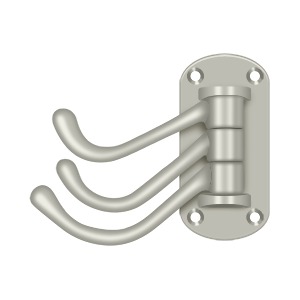 Deltana Triple Hook features 3 swiveling hook arms and can mounted to a wall or the inside of a closet door. It is available in an array of fine finishes.